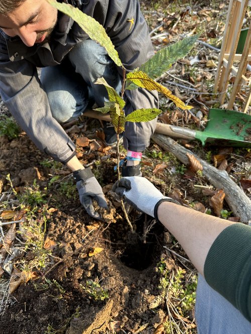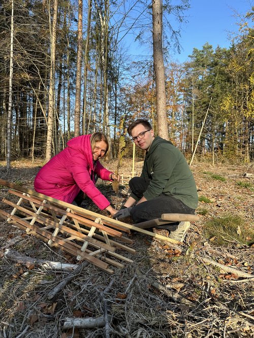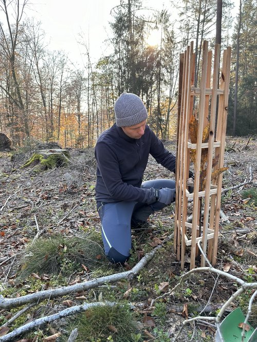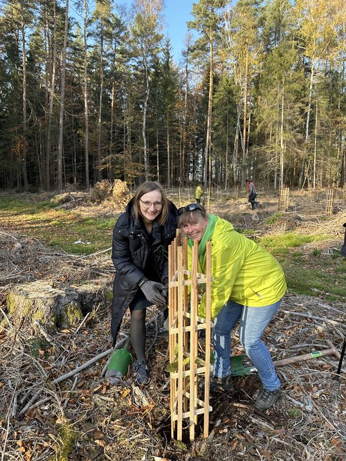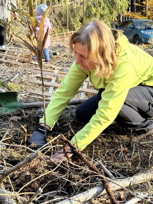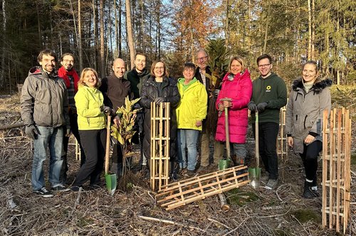 „Einer der ersten grünen Kreisverbände in ganz Bayern. Das ist bemerkenswert!“ so die Bundestagsabgeordnete Lisa Badum, die dem Kreisverband Kulmbach zu ihrem 45-jährigen Bestehen gratulierte. Die Feier fand in einem ungewöhnlichen Rahmen statt und zwar in einem käfergeschädigten Abschnitt des Stadtwaldes, den es aufzuforsten gilt. Zusammen mit der Stadtförsterin, Carmen Hombach, pflanzten rund 20 Kulmbacher Grüne 100 Esskastanien. Diese sind widerstandsfähiger gegen Wärme und Trockenheit und aktuell schon in Regionen wie Norditalien und Südfrankreich zu finden. Gegen Verbiss sind die frischen Setzlinge mit einem Einzelschutz aus Holz geschützt, der von der WfbM in Melkendorf hergestellt wird.