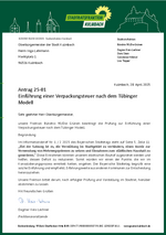 unsere Fraktion Bündnis 90/Die Grünen beantragt die Prüfung zur Einführung einer Verpackungssteuer nach dem Tübinger Modell.